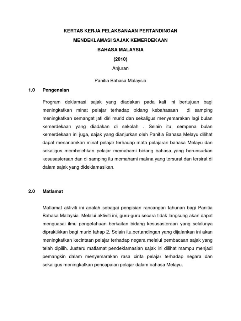 Kertas Kerja Pelaksanaan An Mendeklamasi Sajak 2010 Pdf